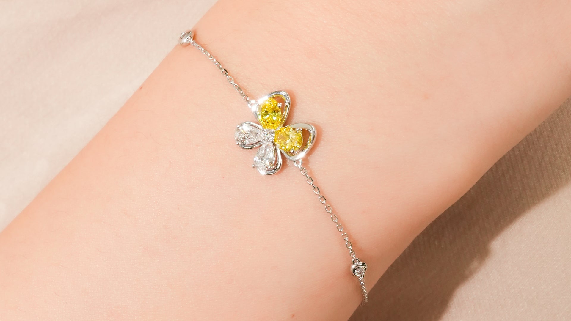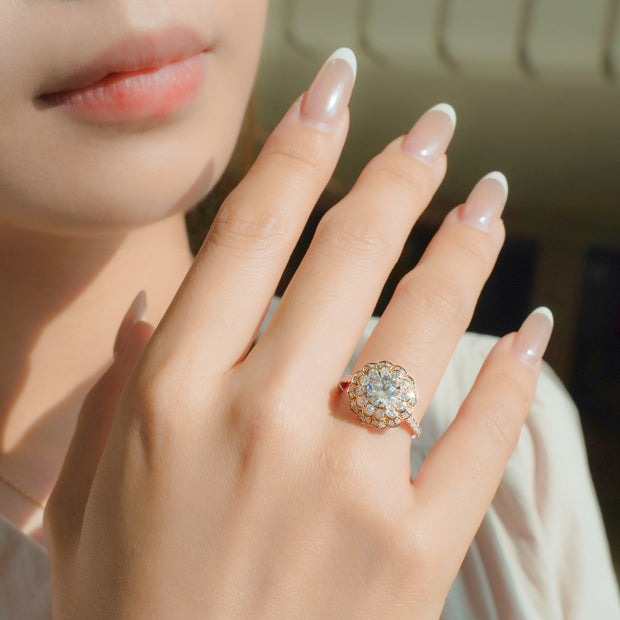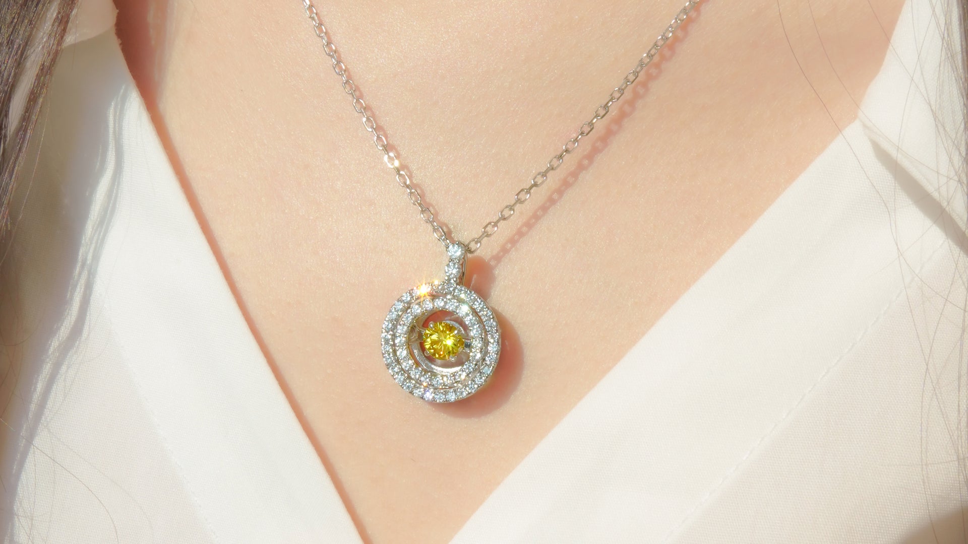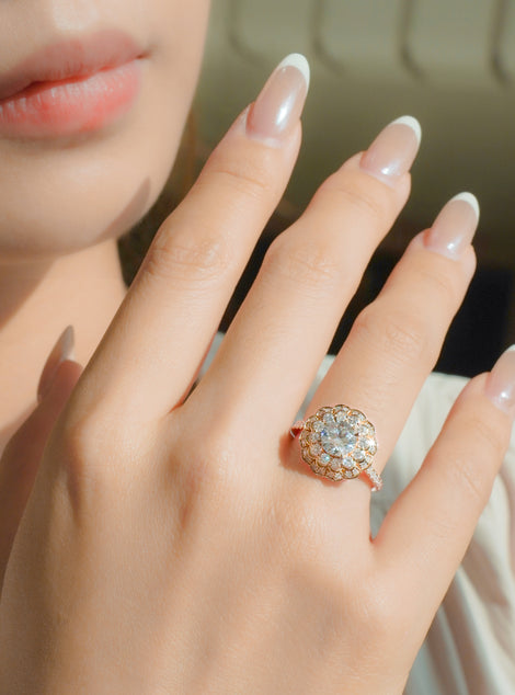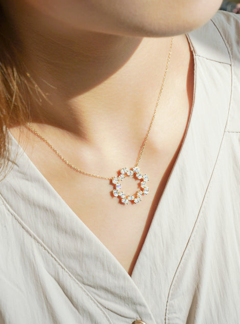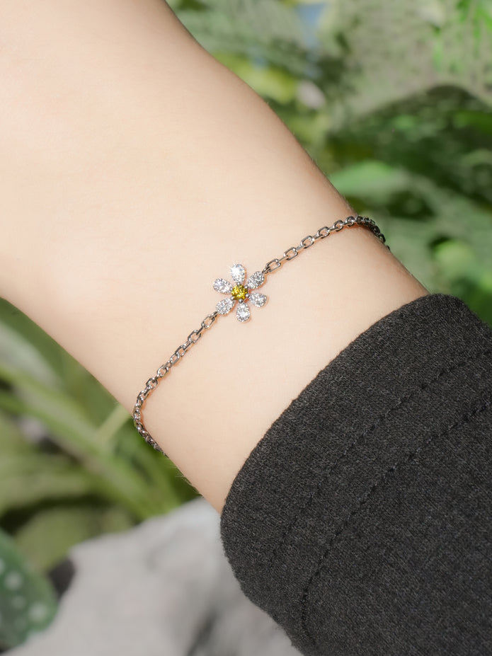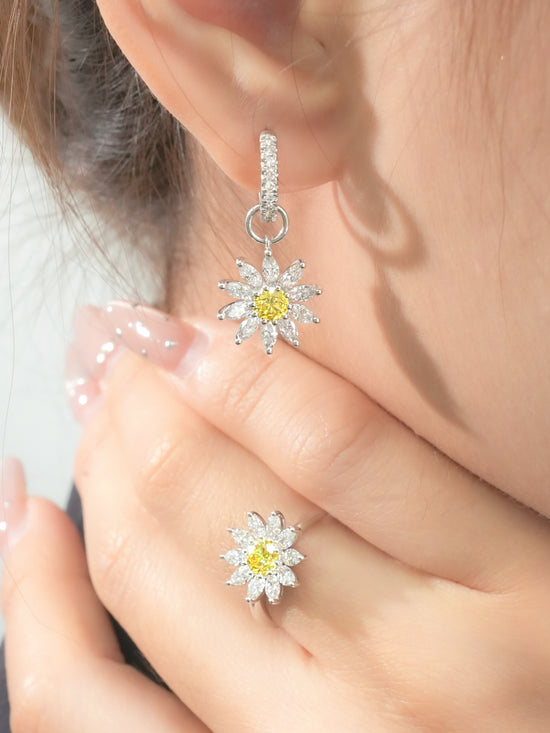 隆重推出“阳光雏菊”系列,每一件作品都捕捉雏菊沐浴在金色阳光下的璀璨光芒。这款精美的珠宝系列以一颗耀眼的黄色钻石为中心,象征着阳光的温暖与喜悦,周围环绕着榄尖形钻石,构成精致闪耀的花瓣。
